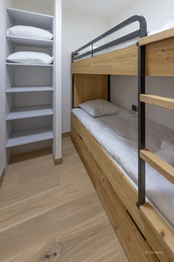 77-82m2, emeletes ágy az előtérben, duplaágyak a 2 hálószobában, kihúzható kanapé a nappaliban 2 fő részére. Második fürdőszoba.