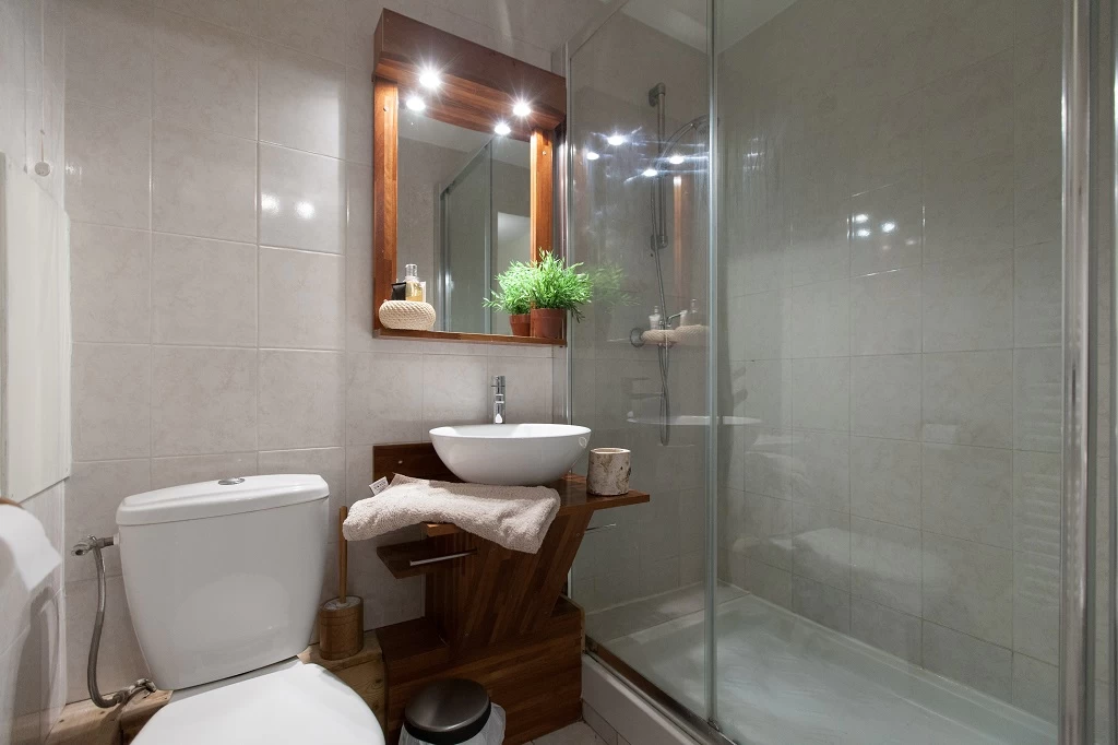 32m2, hálószoba franciaággyal, a nappaliban kihúzható kanapé két fő részére.