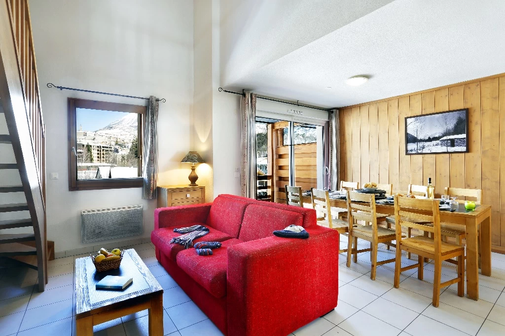 Az egyik legigényesebb szállás Briancon városában, ahonnan csupán a ház mögött csörgedező patak pici hídján kell átmenni a kabinos felvonóhoz. Az apartmanok tágasak, felszereltségük magas színvonalú és egyáltalán nincsenek „lelakva”. A nappali bársonyborítású piros kanapéján öröm megpihenni egy végigsíelt nap után, és az ágyak is kifejezetten kényelmesek. Ágyneműhuzat bekészítve vár az apartmanban. A földszinten ingyenesen használható gőzkabin, pezsgőfürdő, szauna, fitneszterem vár mindenkit, és sítároló is tartozik minden apartmanhoz. Hatalmas biliárdmérkőzéseket szoktunk játszani a lobbiban. Nincs messze a sétálóutca sem, sok sok bárral, étteremmel. Népszerűsége és jó minősége ellenére nagyon jó áron van, és ez már csak pár évig lesz így, úgyhogy használjátok ki!