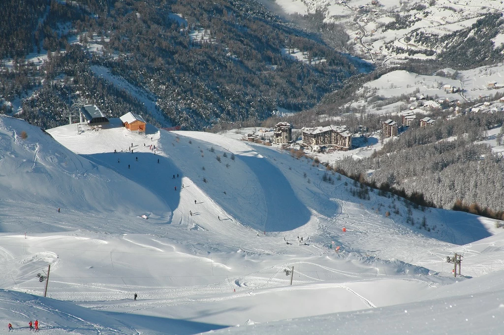 1650 méteren, egy szerpentin tetején található a település magva, mely magasabb, régebben épült apartmanházakból áll. A mi bázisunk, a mi szállásaink, az újonnan épült Bois Méan városrészben vannak, 1800 méter magasságban. Ebben a fiatalosabb, modernebb „kerületben” néhány alacsonyabb, sok faberakással rendelkező, új építésű apartmanház található, közvetlenül a pályák tövében.