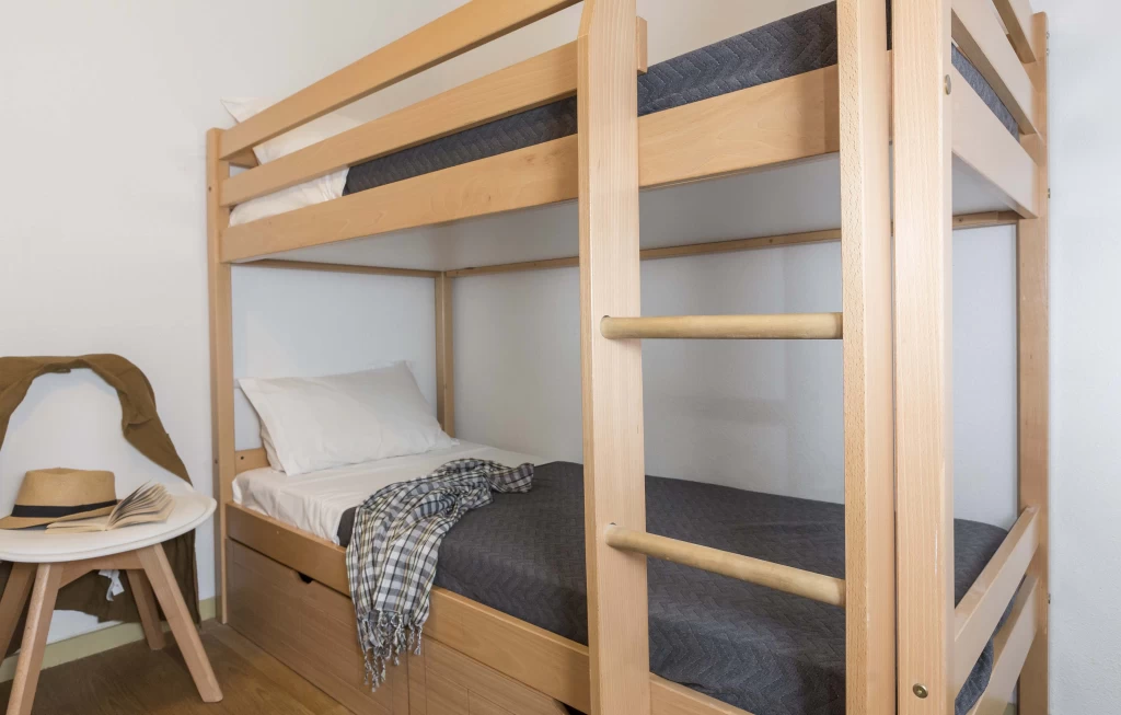29-31m2, nappaliban kihúzható kanapé, hálószoba duplaággyal vagy emeletes ággyal + 1 extra ágy a nappaliban vagy a hálóban.